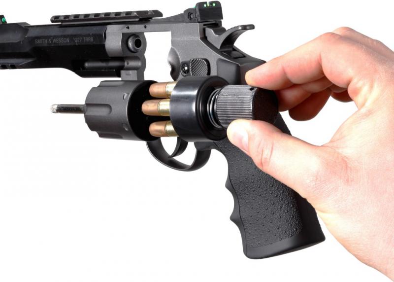 Пневматический револьвер Umarex Smith & Wesson 327 TRR8 отличается мощностью и удобством. Удачная конструкция обеспечивает надежность подачи шариков и высокую начальную скорость. Также следует отметить минимальную утечку газа при выстреле, за счёт отсутствия зазоров при ударе ствола по клапану, в результате чего можно произвести большие количество выстрелов с одного баллона, а механизм заряжания благодаря фальшпатронам добавит реалистичности обращения с настоящим револьвером. Для Екатеринбурга: