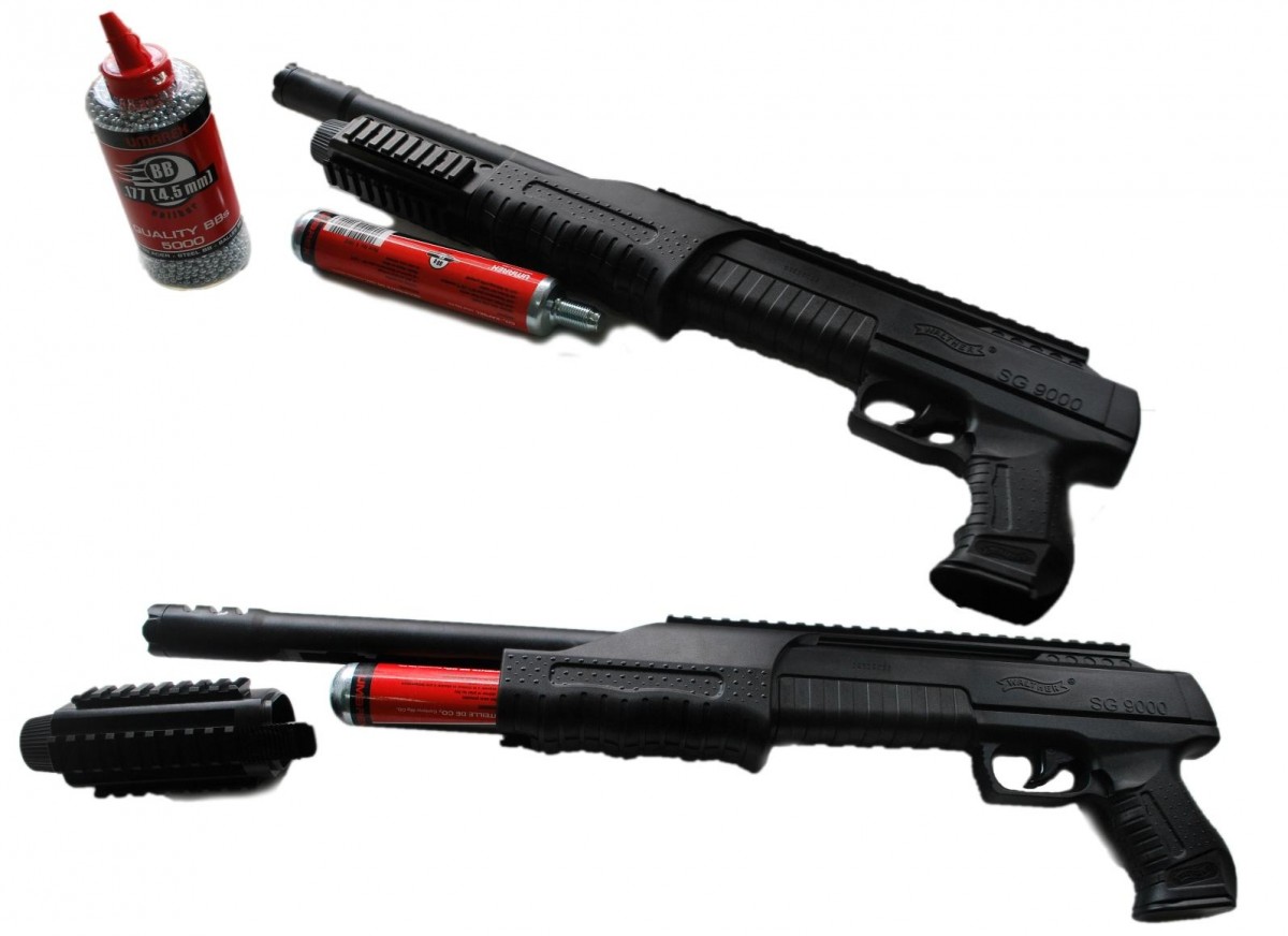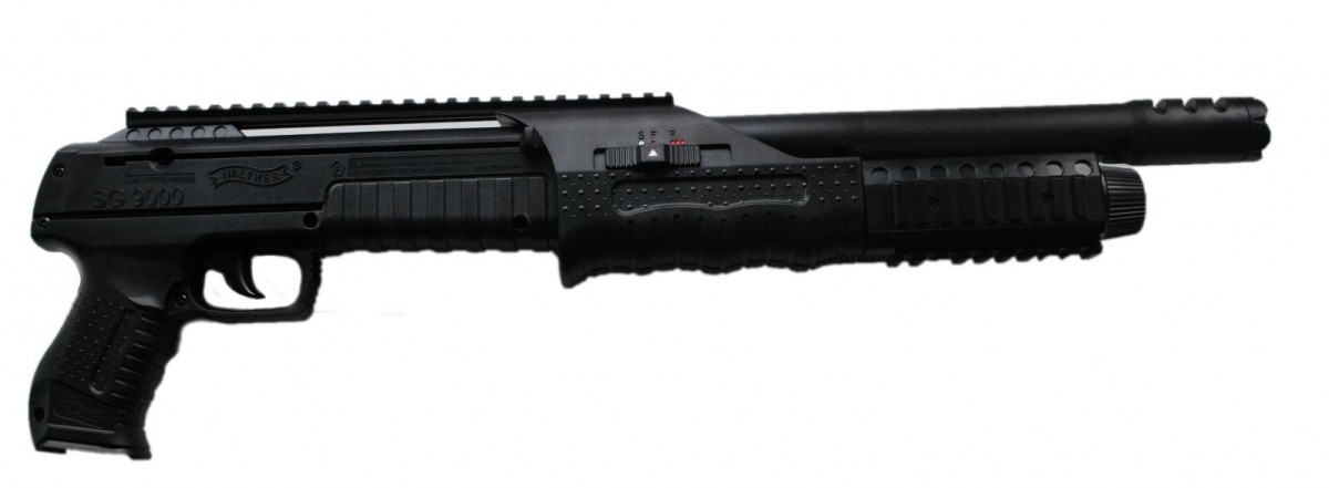 Пнематический пистолет Umarex Walther SG 9000 для стрельбы использует энергию от Со2 баллона 88 грамм. Корпус выполнен из ABS-пластика в дизайне полицейского дробовика – пистолетная рукоятка, приклад отсутствует. Штатных прицельных приспособлений нет, однако предусмотрена планка 22 мм для крепления оптического или колиматорного прицела и аналогичные планки на цевье для крепления навесного тактического снаряжения. Стрельба может вестись как одиночными выстрелами, так и очередями по 3 шарика. Еще одна особенность пнематического пистолета Umarex Walther SG 9000- магазин на 39 шариков, что дает возможность намного реже отвлекаться на перезарядку. Для Екатеринбурга: