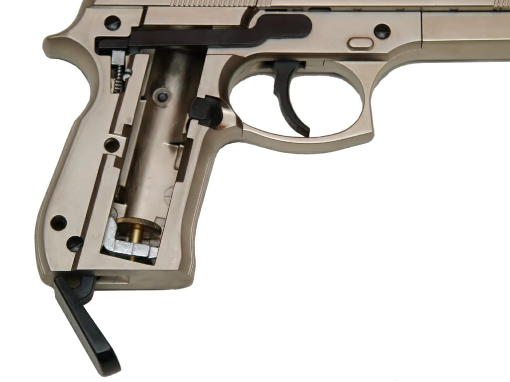 Газобаллонный пневматический пистолет Beretta M92 FS (на базе американского армейского пистолета Беретта M92). Оригинальная конструкция рычажного, прижимного механизма позволяет быстро и надёжно снарядить баллон СО2. Пистолет характеризуется хорошей точностью и кучностью. Для стрельбы используются свинцовые пули. Корпус пистолета цельнометаллический, щёчки рукоятки выполнены из дерева. Становясь обладателем данного пневматического пистолета, Вы можете быть уверены, что у Вас в руках стопроцентная копия настоящего боевого пистолета, произведенная на одном из самых высокотехнологичных в мире оборудовании с соблюдением высочайших требований к качеству продукции. Произведено в Германии! Для Екатеринбурга: