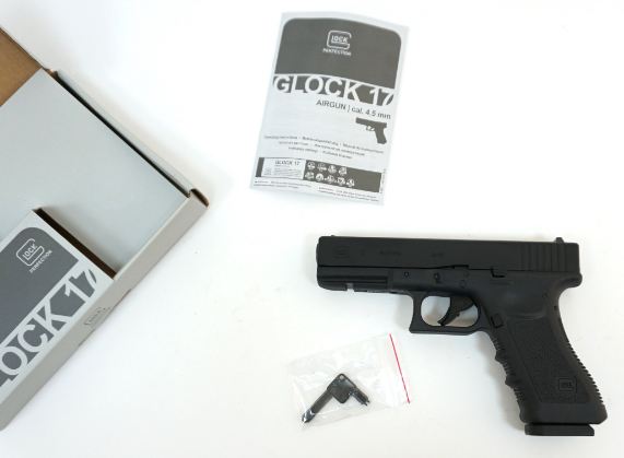 Пистолет пневматический Umarex 5.8361 Glock 17 является точной копией боевого пистолета. Калибр пули составляет 4,5 мм, скорость вылета пули 115 м/с, а весит эта модель 700 грамм. Корпус выполнен из ударопрочного пластика. Есть блоубек/Blowback, что имитирует стрельбу как в боевом пистолете с отдачей. Ствол гладкий. Стрельба ведется обычными стальными шариками ВВ. Пистолет многозарядный, емкость магазина составляет 18 пуль. Источником энергии является баллон СО2 12 г. Пистолет сделан качественно на немецком оружейном заводе Umarex. Пневматическая модель очень похожа на боевой прототип Glock 17. Затвор подвижный. Дульная энергия составляет 3 Дж. Затворная рама выполнена из металла. Затворная рама выполнена из металла. Завод Умарекс изготавливает много точных качественных пневматический копий пистолетов. Открытые прицельные приспособления не регулируются. Пистолет работает с самовзводом, так и с перезарядки. Снизу есть планка для установки тактического фонаря. Длина оружия 20 см. Предохранитель блокирует спусковой крючок. Автоматический крючок сделан как муляж. Магазин вынимается после нажатия кнопки слева на рукояти. Данный пистолет подойдет любителям этой боевой модели, для учебной и развлекательной стрельбы. Скорость вылета пули является очень даже приличной для пневматического пистолета с такими характеристиками. Для Екатеринбурга: