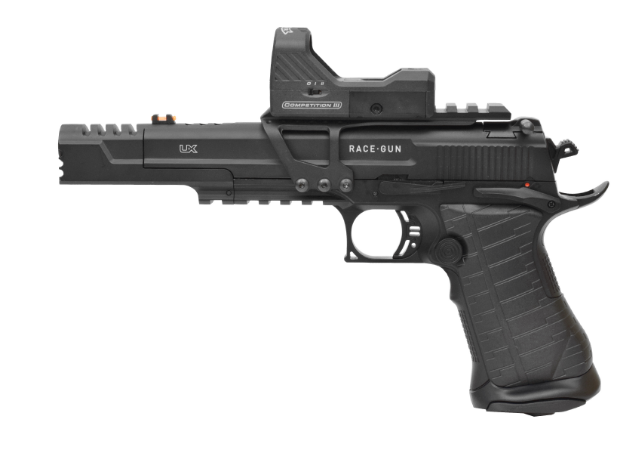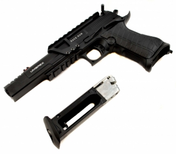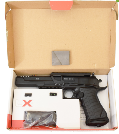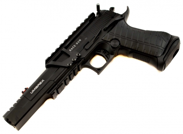 Пневматический пистолет Umarex Race Gun имеет калибр 4,5 мм и стреляет стальными омедненными шариками. Дульная энергия равна примерно 2,7 Дж, что указывает на то, что пистолет приобретается свободно по достижении 18 лет и нигде не регистрируется. Начальная скорость пули составляет около 125-130 метров в секунду, что является средним показателем для пистолета такого класса. Пистолет выполнен из металла, и в связи с этим он имеет высокую прочность. Также пистолет имеет систему иммитации отдачи (блоубэк), и, вкупе с массивным металлическим затвором, производится достаточно мощный по меркам пневматики импульс отдачи. 12 граммовый баллон с углекислотой и шарики размещаются в магазине. С одного баллона можно сделать до 80 выстрелов. УСМ предусматривает ведение только полуавтоматического огня. Спуск нерегулируемый. Прицельные приспособления открытые, также есть планка пикаттини для установки различных аксессуаров, в комплект входит коллиматорный прицел.