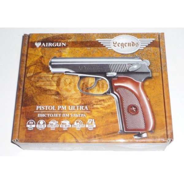 Пневматический пистолет UMAREX ПМ Ultra - копия легендарного пистолета Макарова образца 1949 года. УСМ двойного действия позволяет вести стрельбу как самовзводом, так и с предварительным взведением курка. Затворная рама подвижная. Корпус пневматического пистолета UMAREX PM Ultra изготовлен из металла, накладка на рукоятке выполнена из пластика. Особенности: