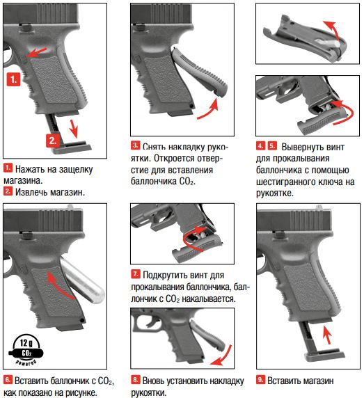 Пневматический пистолет Umarex Glock 19 - новинка 2018 года. Он изготовлен как реплика всемирно известного боевого Глока(Glock), в котором впервые большинство деталей было изготовлено из полимеров. Благодаря этому, а также магазину высокой емкости и некоторым другим революционным особенностям конструкции, пистолет приобрел широкую известность и популярностьво всем мире. Как и у оригинала, у пневматической версии Umarex Glock 19 затворная рама изготовлена из металла, а рукоятка из пластика. Пневматический пистолет Umarex Glock 19 - точная копия своего огнестрельного аналога, реализован даже предохранитель на спусковом крючке Для Екатеринбурга:
