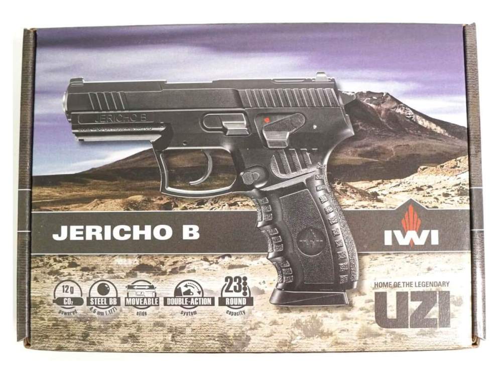 Пневматический пистолет Umarex IWI Jericho B – это гладкоствольная газобаллонная реплика израильского боевого пистолета IWI Jericho B калибра 9x19 мм. Производитель модели – немецкий бренд Umarex, с 1972 года специализирующийся на разработке и производстве оружия для самообороны и пневматики. В последние годы бренд приобрел ряд лицензий на выпуск пневматики как копий огнестрельных модификаций, известных во всем мире. Высокий спрос на изделия бренда объясняется безупречным качеством сборки и высокой надежностью. Umarex IWI Jericho B предусматривает полуавтоматический режим стрельбы, боеприпасами являются шарики ВВ калибра 4,5 мм. Газовый баллончик с диоксидом углерода на 12 г располагается в рукоятке пистолета. Устанавливается он очень просто, так как поджимной винт раскручивается без использования дополнительных инструментов. Одного баллончика будет достаточно для произведения около 80 выстрелов. Данная модель подходит и левшам, и правшам благодаря наличию двухстороннего предохранителя. Здесь использован УСМ двойного действия, стрелять возможно с предвзводом курка. Магазин пистолета вмещает 23 шарика. На вылете шарик имеет скорость 115 м/с. Основа пистолета и подвижный затвор выполнены из металла, для рамки использован полимерный материал. Весит пистолет 0,58 кг, длина его составляет 19 см. Прицельные приспособления модели представлены регулируемым целиком и неподвижной мушкой. Пистолет Umarex IWI Jericho B – это современное надежное оружие, благодаря отличной эргономике прекрасно подойдет и опытному, и начинающему стрелку.