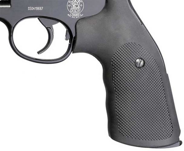 Пневматический револьвер UMAREX S&W 586-4 является точной копией огнестрельного револьвера Smith & Wesson 586, выполненной с применением однотипных со своим прообразом материалов. Как и вся немецкая пневматика, он обладает нарезным стволом из нержавеющей стали, обеспечивающим высокую точность стрельбы. Стрельба производится свинцовыми пулями. Ударно-спусковой механизм двойного действия позволяет производить стрельбу самовзводом и с предварительным взводом курка. Барабан в револьвере декоративный, неподвижный - используются металлические барабанчики-клипы на 10 пуль. Конструкция системы зарядки баллона обеспечивает быстрое приведение оружия в боевое положение, создает оптимальное усилие пробития и поджатия баллона, повышает долговечность дозатора. Высокопрофильные прицельные приспособления способствуют точному прицеливанию. Штатная мушка неподвижная, целик регулируется по высоте и горизонту микрометрическими винтами. Возможна замена целика на кронштейн-основание для коллиматорного прицела. Автоматической предохранитель блокирует спусковой крючок при зарядке барабана-клипа. Полимерные обрезиненные накладки рукоятки. Пневматический пистолет UMAREX Smith&Wesson 586 произведен в Германии! Для Екатеринбурга: