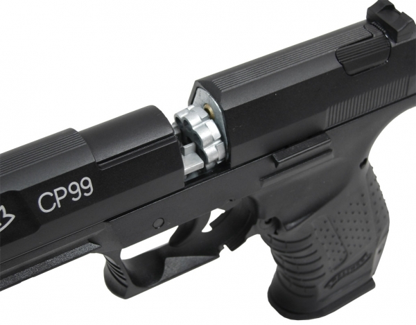 Пневматический пистолет Umarex Walther CP99 - практически точная копия боевого пистолета Walther P-99. Облегченный ударопрочный пластиковый корпус. Как и вся немецкая пневматика, он обладает нарезным стволом из нержавеющей стали, обеспечивающим высокую точность стрельбы. Для Екатеринбурга:
