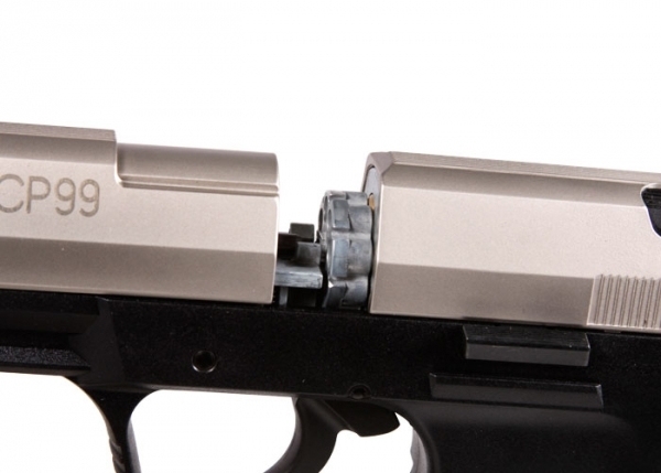Пневматический пистолет Umarex Walther CP99 - практически точная копия боевого пистолета Walther P-99. Облегченный ударопрочный пластиковый корпус. Как и вся немецкая пневматика, он обладает нарезным стволом из нержавеющей стали, обеспечивающим высокую точность стрельбы. Для Екатеринбурга: