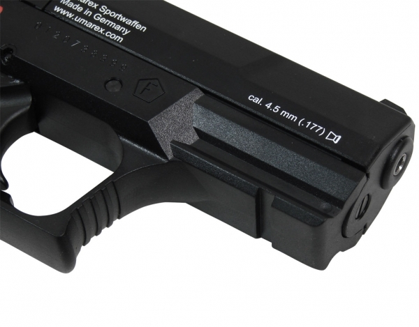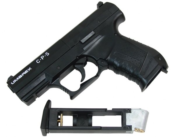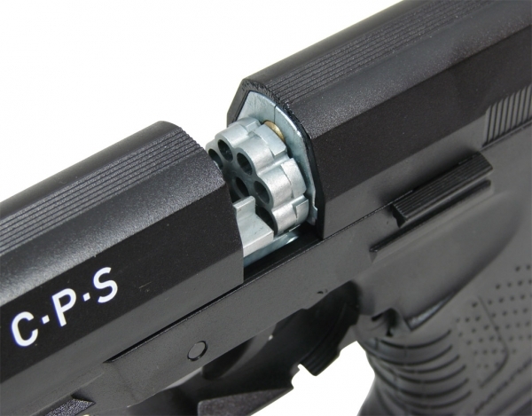 Пневматический пистолет Umarex CP Sport (C.P.S) имеет нарезной ствол из нержавеющей стали, который обеспечивает высокую точность стрельбы и долгую безотказную работу пистолета в целом. Барабанная система зарядки и хранения пуль. При легком нажатии рычага справа, ствольная коробка уходит вперед, открывая доступ к магазину-барабану. Прицельные приспособления - широкая прямоугольная прорезь и широкая прямоугольная мушка. Целик регулируемый. На тыльной стороне целика и мушки нанесены люминесцентные точки белого цвета, которые сильно облегчают прицеливание даже при слабом освещении и при скоростной стрельбе навскидку. Высокое качество клапанной системы, позволяющей сохранить вставленный и активированный баллон в течение нескольких месяцев без заметных потерь давления газа. Рамка изготовлена из полиамида, усиленного в ответственных местах металлическими пластинами, а затвор-кожух изготовлен из силумина. Задняя часть рукоятки сменная, что позволяет индивидуально подгонять размер рукоятки. Передняя часть пистолета снабжена пазами для установки на него лазерного целеуказателя, коллиматорного прицела или фонаря.