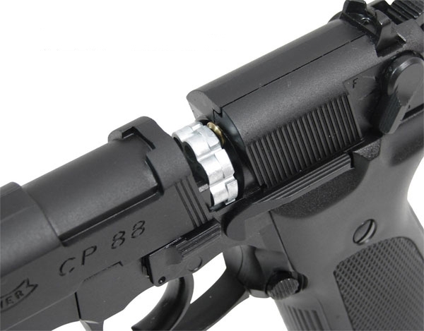 Пневматический пистолет Umarex Walther CP88 - копия знаменитого Walther CP88. Дизайн и качество исполнения Walther, ставшие классикой. Цельнометаллический корпус, накладки на рукояти выполнены из пластика. Как и вся немецкая пневматика, он обладает нарезным стволом из нержавеющей стали, обеспечивающим высокую точность стрельбы. Конструкция пневматического пистолета Umarex Walther CP88 отличается высокой надежностью. Отличная точность и кучность стрельбы. Пистолет позволяет выстрелить 8 пулек за 3 сек без заметного снижения траектории. Для Екатеринбурга: