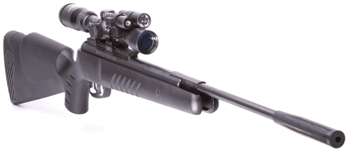 В комплекте с винтовкой Crosman Venom 8-CD1K77NP идет оптический прицел CenterPoint 3-9x32. Начальная скорость пули составляет 305 м/с (суперлегкой пулей - 365 м/с). В оружии используется современная технология Crosman - заполненный азотом пневмоцилиндр, который играет роль газовой пружины. Благодаря этому винтовка действительно стала "всепогодной", т.к. азот стабильно сохраняет свои свойства при различных температурах и атмосферных давлениях. Благодаря использованию нитроузла вместо обычной пружины винтовка стреляет на 30% тише (по данным компании Crosman). Кроме того, заметно меньше отдача при выстреле, чем на обычной пружинно-поршневой пневматике. Это увеличивает срок службы всех механизмов оружия и особенно оптического прицела. Винтовку можно долго держать во взведенном состоянии, не боясь, что пружина "сядет". Это было серьезным минусом обычных пружинно-поршневых винтовок. Резиновая насадка на конце ствола облегчает взведение винтовки. Винтовка оснащена эргономичным прикладом, отвечающим современным требованиям.