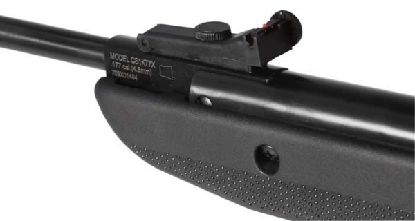Пневматическая винтовка Crosman Phantom 1000 CS1K77 технически очень похожа на Quest 1000. Только приклад выполнен из другого материала и немного изменен дизайн. Эта модель, зачастую, пользуется такой популярностью благодаря своей невысокой цене, ведь эту винтовку с уверенностью можно отнести к бюджетному оружию. Качество своей продукции Crosman доказывала уже не один раз – даже самые ее дешёвые модели очень качественные. Главная стратегия этой компании – привить любовь к своей продукции раз навсегда. А это возможно только в том случае, если качество всегда будет оставаться на высоте. Сразу после приятной цены следуют мощь и надежность – вот три пункта, благодаря которым Crosman Phantom 1000 CS1K77 пользуется большой популярностью. С помощью пружины, установленной в заряженном положении, обеспечивается очень мощный выстрел. Взвод происходит «переламыванием» ствола. Ствол нарезной и изготовлен из высокопрочной стали, приклад – из ударопрочной пластмассы, а затыльник резиновый, что значительно смягчает удар от отдачи. Вес Crosman Phantom 1000 около 3 кг., а длина – 1130 мм - однозарядная винтовка таких габаритов выглядит очень внушительно. Начальная скорость выстрела – около 305 м/с. Для винтовки данной ценовой категории это превосходный результат.