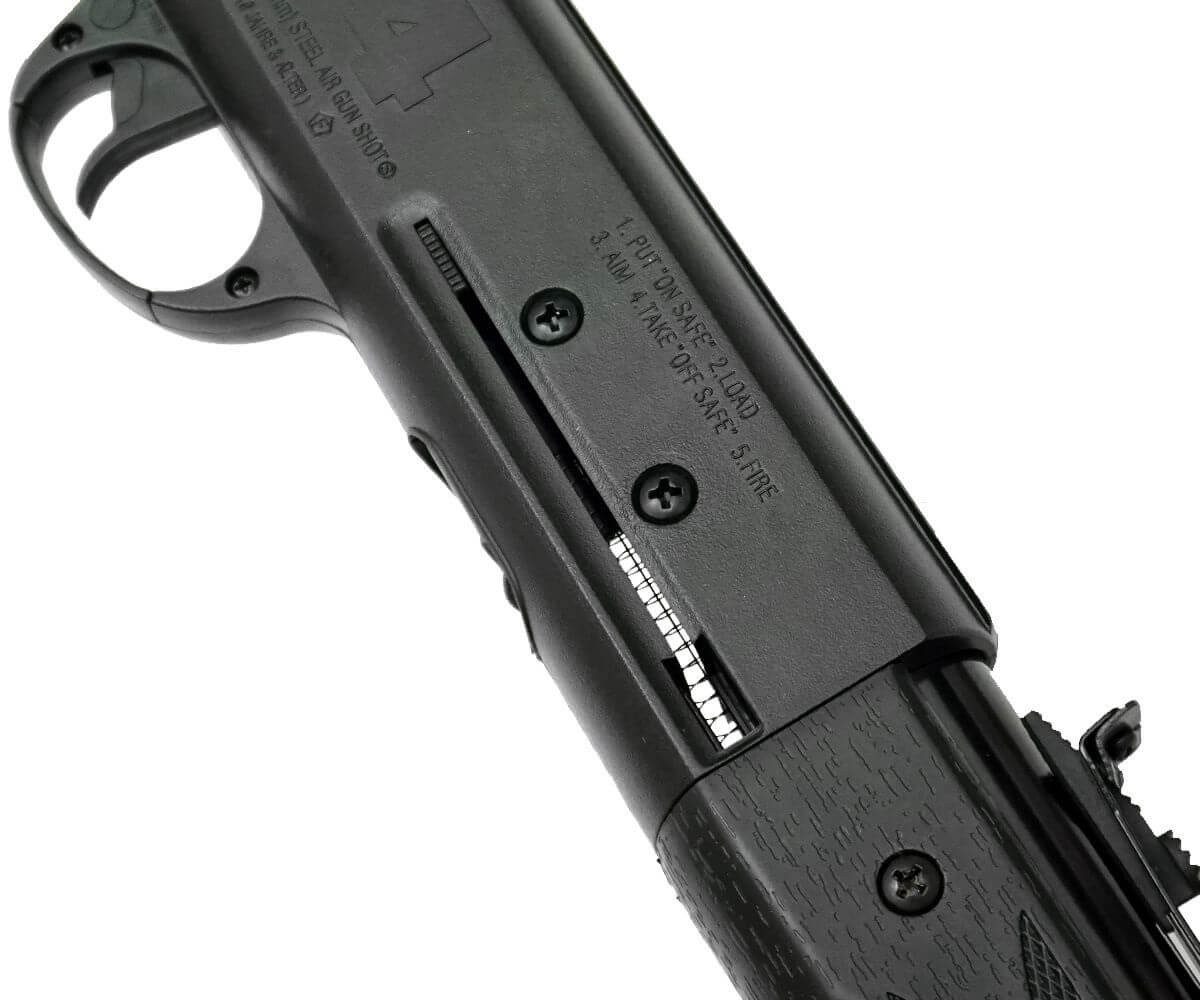 Пневматическая винтовка Daisy 74 CO2 – это недорогая газобаллонная модификация, рассчитанная на стрелков начального уровня. Винтовка идеальна для стрельбы на дальность до 50 метров. Винтовка функционирует от энергии баллончика с углекислотой на 12 г, отсек для него находится слева под щекой приклада. Бункерный магазин винтовки Дэйзи 74 CO2 рассчитан на 350 шариков калибра 4,5 мм. Стреляет винтовка в полуавтоматическом режиме, начальная скорость вылета шарика – 107 м/с. Благодаря дульной энергии, не превышающей 3 Дж, винтовка доступна для свободной продажи, при покупке не требуется предъявления лицензии и разрешения на оружие. Для повышения безопасности эксплуатации винтовки предусмотрен ручной предохранитель. Нарезы в стволе отсутствуют. Внешне изделие похоже на классические огнестрельные винтовки, и выполнено в черном цвете. Целик с мушкой открытого типа, регулируются. Основной материал – оружейный пластик, ствол винтовки стальной. Установка оптических прицелов и прочего обвеса не предусмотрена. Длина винтовки 96 см, вес 0,9 кг. В комплекте паспорт изделия. Daisy 74 CO2 – легкая бюджетная винтовка для получения первого опыта стрельбы из пневматики, отличное решение для подростков и новичков. Для Екатеринбурга: