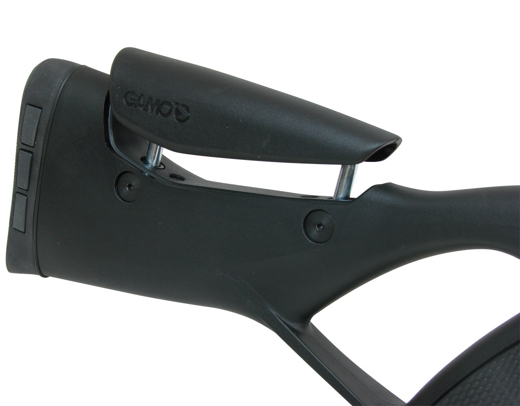 Для гашения отдачи GAMO CFR IGT оснащена специальной вентилируемой подушкой с абсорбирующими свойствами, которая располагается на прикладе. Также, для улучшения эргономики, на прикладе имеется вырез под большой палец. Щека приклада регулируется по высоте. Прицельная мушка оснащена специальными фибергласовыми нитями облегчающими прицеливание.