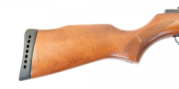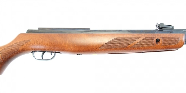 Однозарядная пружинно-поршневая винтовка модели Hunter 1250 оснащена нарезным стальным стволом. Для стрельбы используются только свинцовые пули. Спуск с предупреждением. Оснащена воздушным цилиндром увеличенного объема и боевой пружиной повышенной жесткости. Взведение производится "переломом" ствола, движением вниз-назад-вперед-вверх. При взведении открывается казенный срез ствола для ручного заряжания пули. Длину хода и усилие спуска можно регулировать винтом, расположенным внутри спусковой скобы позади спускового крючка. Автоматический предохранитель блокирует поршень от срыва во время заряжания. Неавтоматический предохранитель, выполненный в виде рычажка, расположен внутри спусковой скобы перед спуском. Крупный надульник дает удобную опору для ладони при взведении для преодоления сопротивления мощной боевой пружины. На надульнике установлена мушка. Положение целика корректируется по вертикали и горизонтали микрометрическими винтами. На ствольной коробке есть направляющая с упором для установки оптического или коллиматорного прицела. Покрытие металлических деталей черное оксидирование. Материал приклада и цевья - дерево (бук, грецкий орех) с резиновым амортизирующим затыльником. Глубокая насечка на шейке приклада позволяет надежно удерживать винтовку. Для Екатеринбурга:
