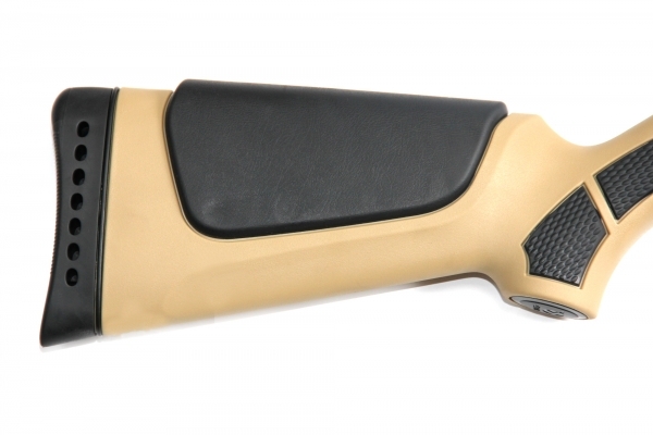 Ложе у Gamo Viper Desert сделано из пластика песочного цвета, имеет эргономичный дизайн, который хорошо держится в руках.