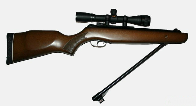 Пружинно-поршневая пневматическая винтовка с переломным стволом. Выполненное в классическом стиле ложе изготовлено из натурального дерева породы орех, оно хорошо обработано и выглядит очень стильно. На конце приклада имеется мягкий резиновый затыльник для гашения энергии отдачи. Винтовка комплектуется оптическим 4-х кратным прицелом с диаметром линз 32 мм. Для стрельбы лучше использовать свинцовую пулю калибра 4,5 мм. Начальная скорость такой пули составляет 305 м/с. Для Екатеринбурга: