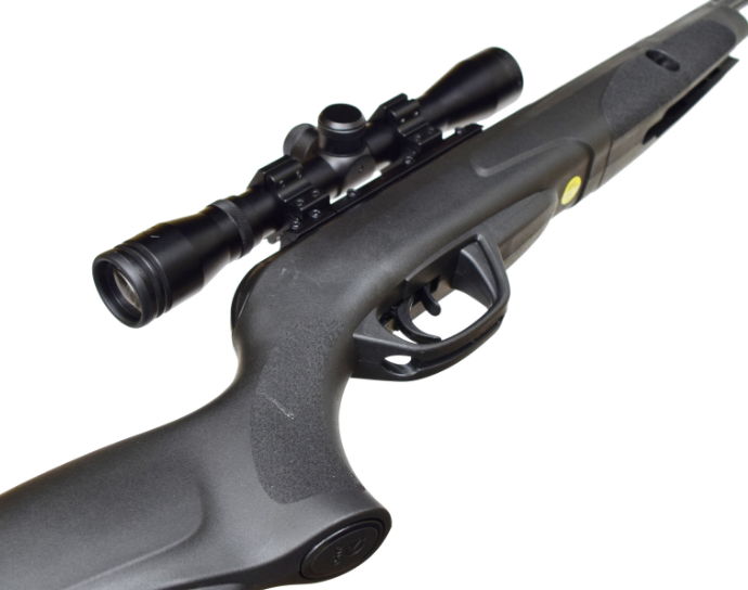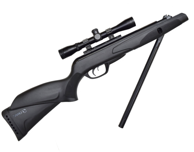 Скорость полета пули – до 340 м/с (или 140 м/с в ослабл. варианте). Особенностью винтовки является ее комплектация фирменным оптическим прицелом Гамо 4х32. Предусмотрен предохранитель неавтоматического типа.