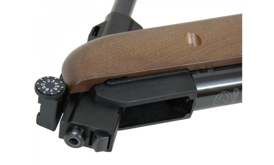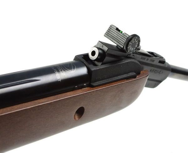 Винтовка Gamo Delta Forest – пружинно-поршневая модель, обладающая стильным дизайном. Ложе винтовки изготовлено из дерева. Приклад формы Монте-Карло имеет резиновый затыльник, который значительно смягчает отдачу. У винтовки относительно компактные размеры. Длина винтовки 94 см, и несмотря на то что ложе сделано из дерева, винтовка довольно легкая, поскольку весит 2,1 кг. Взводится винтовка переломом ствола. У винтовки Gamo Delta Forest нарезной ствол из высококачественной стали. Модель оснащается регулируемым прицелом. Мушка открытого типа и целик оборудованы вставками из светособирающих нитей. Скорость пули на уровне 160 м/сек, которой хватает для развлекательной и спортивной стрельбы. Для безопасной стрельбы винтовка оборудована ручным предохранителем.