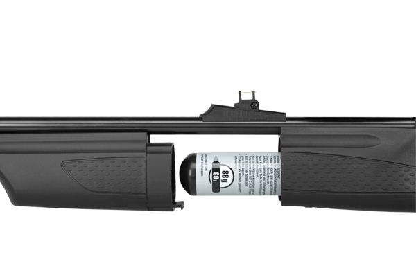 Популярная модель газобалонной пневматики, снискавшая себе заслуженную славу среди стрелков всего мира. Выстрел обеспечивает углекислый газ (88г баллон). Приклад типа "Монте – Карло" обеспечивает комфортное прицеливание, особенно в положении лежа. Насечки в местах хвата не дают руке скользить. Барабан-клип расчитан на восемь зарядов. Мушка и прицельная планка снабжены контрастными фибергласовыми нитями для точного прицеливания. Для Екатеринбурга:
