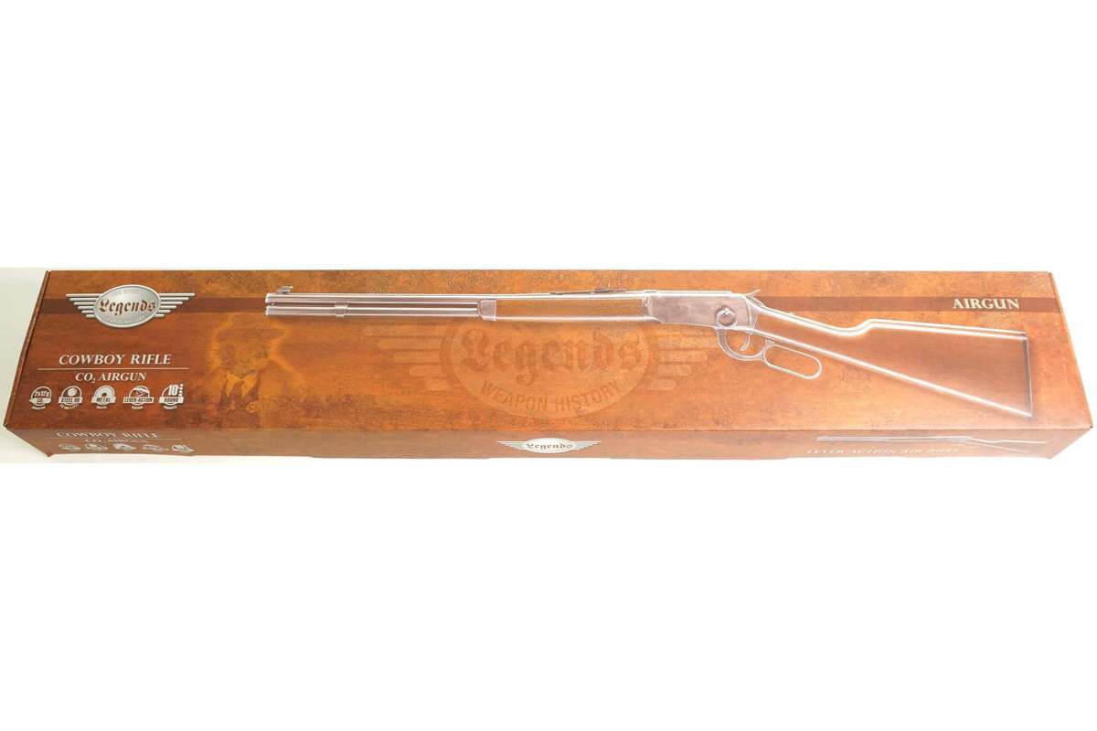 Umarex Cowboy Rifle - классическая винтовка с рычагом Дикого Запада от немецкого производителя. Предназначена для развлекательной и тренировочной стрельбы. Винтовка отличается невероятной легкостью, компактностью, эргономичностью, эффективностью. Цельнометаллическая ствольная коробка с полированной хромированной отделкой, что делает ее прочной и устойчивой к внешним воздействиям.