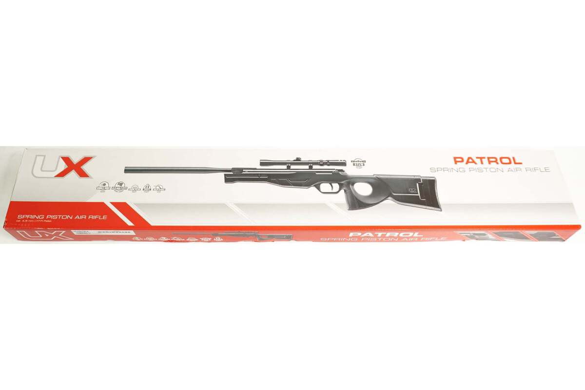 Винтовка Umarex PATROL с оптическим прицелом 3-7х20 Компания Umarex представила новую винтовку модели PATROL переломного типа, мощностью до 7,5 Джоулей. Умарекс Патрол - однозарядная пружинно-поршневая винтовка, используемая для развлекательной и тренировочной стрельбы.