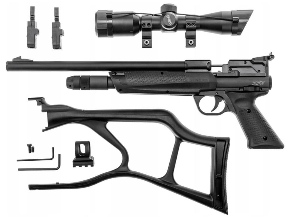 Пистолет - карабин Umarex RP5 Сarbine Kit - с пневматическим приводом, работающий на CO2. Его модульная структура предоставляет вам широкий выбор опций и указывает путь для пневматического оружия следующего поколения. Umarex RP5 обладает более чем 45-летним опытом разработки и производства пневматического оружия. В комплекте приклад, прицел, интегрированный глушитель. Для воспроизведения энергии в подствольный отсек пистолета - карабина Umarex RP5, загружаются два 12 гр баллончика CO2 . 5-ти зарядный магазин с пулями вставляется простым движением, как в некоторых ружьях. Эта абсолютно новая функция увеличивает скорость стрельбы и, с дульной энергией до 11 Дж, обеспечивает массу удовольствия. Уникальный разработанный дизайн пистолета подходит как для правшей, так и для левшей. Для Екатеринбурга: