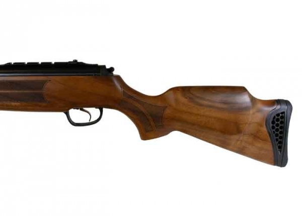 Пневматическая винтовка Hatsan 135 пружинно-поршневого типа. Стальной нарезной ствол, приклад и ложе выполнены из дерева - турецкого ореха. Приклад имеет щеку «Монте Карло» Длина приклада регулируется с помощью системы TRIOPAD, также данная система уменьшает отдачу. Спусковой крючок у Hatsan 135 двухфазный, регулируется усилие спуска. Винтовка оснащена двумя предохранителями для полной безопасности и защитным механизмом в случае непредвиденного снятия предохранителя при взведении боевой пружины. Микрометрическая прицельная планка регулируется по горизонтали и вертикали. Мушка открытая, оптоволоконная. Для Екатеринбурга: