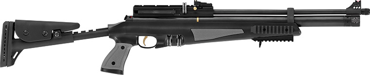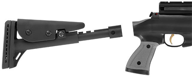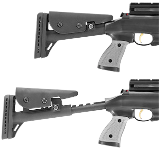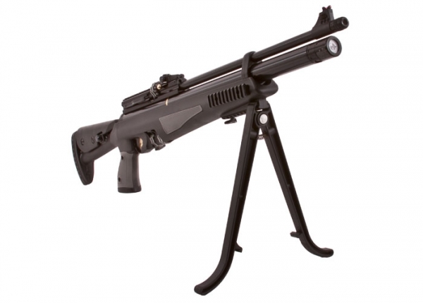 Hatsan AT44-10 TACT имеет регулируемый по длине и высоте приклад, который также легко отсоединяется. Ствол у винтовки стальной нарезной, с резьбой на конце для установки глушителя или надульника.