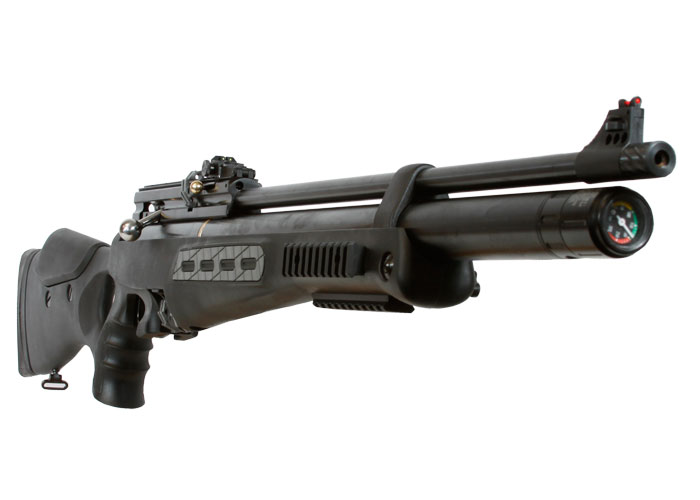 Винтовки Hatsan BT65 SB Elite в калибрах 4,5 мм и 6,35 мм (3Дж), выбрать нужный калибр можно в окошке, справа от цены. Очень богатая комплектация: пластиковый кейс, тактический фонарь, оптический прицел Optima 3-12x44 AOE с отстройкой от параллакса и подсветкой сетки, 3 магазина, ремень, сошки, набор резиновых прокладок, заправочный штуцер, стравливатель воздуха из резервуара Винтовки Hatsan BT65 SB Elite и Alfamax 24 Elite идентичны на 100%, выпускаются они одним производителем, на одном и том же заводе. Торговая марка ALFAMAX появилась в России в 2013 году. И появилась она исключительно по маркетинговым соображениям. Это все те же винтовки HATSAN, но под другим именем. Обе торговые марки принадлежат турецкой компании Bahtiyar AV (Турция), и сейчас винтовки этого производителя поставляются в Россию как под брендом HATSAN, так и под брендом ALFAMAX (один из российских дилеров заключил эксклюзивный договор на поставку HATSANов, остальные теперь возят ALFAMAX). При этом модели ALFAMAX на 100% идентичны соответствующим моделям пневматического оружия под торговой маркой HATSAN. Винтовки обоих брендов изготавливаются на одном заводе, на одном оборудовании и из одних и тех же материалов. Никакой разницы между ними нет, за исключением, разве что, коробки другого цвета и надписи на самой винтовке. Пневматическая винтовка PCP Hatsan BT65 SB Elite – укомплектованная модифицированная версия новой турецкой магнум винтовки Hatsan BT65 SB. Пневматическая винтовка Hatsan BT65 SB Elite получила эргономичную пистолетную рукоятку с насечками, два слота для хранения запасных магазинов и три планки вивера - одна снизу и две по бокам цевья для крепления аксессуаров. Приклад Hatsan BT65 SB Elite регулируется по длине. Резервуар винтовки изготовлен из алюминия, имеет объем 255 см3 и обеспечивает 70 выстрелов на полной мощности. Также резервуар можно снять без потери воздуха, что позволяет использовать запасные резервуары. Манометр встроенный, позволяет вести контроль за давлением. На винтовке установлена планка для крепления оптического прицела под 22 мм и под 11 мм. Система защиты от повторного досылания пули. Открытое TRUGLO прицельное приспособления с фибероптическими нитями. Двухступенчатый спусковой механизм, с регулировкой свободного хода и усилия спуска. Винтовка является полным аналогом модели Hatsan Hatsan BT65 RB Elite, отличие только в расположении болта взвода - здесь он сбоку справа. Для Екатеринбурга: