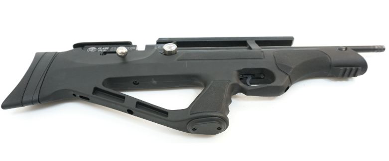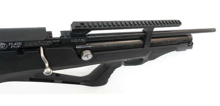Характеристики винтовки Hatsan FlashPup пластик 5,5 и 6,35: • Это РСР-винтовка с боковым болтовым взводом