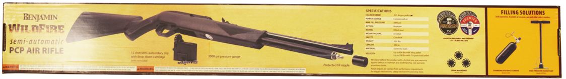 Пневматическая винтовка Crosman Benjamin Wildfire калибра 4,5 мм - новинка, созданная на базе проверенной временем модели Crosman 1077. Данная модель оснащается резервуаром (давление до 200 Атм), который можно заправлять насосом или баллоном ВД. Что позволит значительно экономить на баллончиках СО2! Одной заправки хватает на 60 выстрелов. Заправочный порт расположен под крышкой на конце резервуара. Скорость полета пули при стрельбе из винтовки Crosman Wildfire может достигать 233 м/с Полуавтоматическая винтовка Benjamin Wildfire PCP очень комфортна при стрельбе, барабан вмещает 12 пуль. Винтовка стреляет так быстро, как Вы сможете нажимать на спуск. Длина винтовки меньше метра - 930 мм. Длина ствола 518 мм. Весит винтовка Crosman Wildfire всего 1,68 кг, как и модель-прародитель Кросман 1077. Корпус выполнен из металла и пластика, окрашенного в чёрный цвет. Для Екатеринбурга: