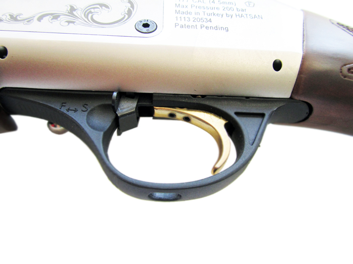 Винтовки Hatsan Galatian II и Alfamax 30W идентичны на 100%, выпускаются они одним производителем. Спецпредложение! При покупке данной модели мы дарим вам сертификат номиналом 500р! На эту сумму вы можете, например, заказать боеприпасов. Просто добавьте интересующие вас товары к заказу, и номинал сертификата будет вычтен из итоговой суммы заказа! Пневматическая винтовка PCP Hatsan Galatian II – новинка 2013 года от турецкого производителя. Серия Hatsan Galatian представлена 4-мя моделями. Основное их отличие — это материал приклада (дерево или пластик), рукоять (классическая или пистолетная, с отверстием под большой палец). Также у каждой модели имеется версия Carbine - на ней отсутствуют внешние прицельные приспособления и интегрирован глушитель. PCP винтовка Hatsan Galatian 2 получила новый элегантный дизайн, внешне очень схожий с дизайном автоматических гладкоствольных ружей. Винтовка имеет барабан на 16 пуль, выполненный из металла. Пули в барабане удерживаются двумя резиновыми кольцами, что предотвращает заряжание более чем одной пули в ствол. Для снятия барабана нужно отвести ручку взвода и сдвинуть рычажок, связанный с осью барабана. Ствол у винтовки Hatsan Galatian II стальной нарезной, на конце ствола резьба для установки глушителя. Рукоять взвода сделана из стали. Уплотнение досылателя сделано в стволе. Ствольная коробка цельная, фрезерованная с гальваническим покрытием. Материал изготовления аналогичен коробкам охотничьих ружей и затворам газовых пистолетов. Приклад Hatsan Galatian 2 имеет регулируемую по высоте щеку, а также регулируемый по высоте, углу и длине затыльник. В прикладе винтовки предусмотрено отверстие для крепления второго барабана-клипа. Также приклад оснащен антабками - для крепления переносочного ремня. Резервуар винтовки Hatsan Galatian II изготовлен из алюминия, имеет объем 255 см3 (идентичен резервуару винтовок серии BT65) и обеспечивает 80 выстрелов на полной мощности. На винтовке имеются открытые прицельные приспособления, а также унифицированная планка (вивер 22 мм, ласточкин хвост 11 мм) для установки оптики. Для удобства крепления оптического прицела задняя прицельная планка выполнена съемной. Спусковой механизм с возможностью регулировки холостого хода, рабочего хода и усилия спуска. В комплект поставки входят пластиковый кейс, ремень, 2 магазина. Для Екатеринбурга: