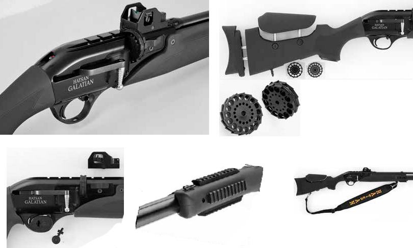 Винтовки Hatsan Galatian III и Alfamax 30 TH идентичны на 100%, выпускаются они одним производителем, на одном и том же заводе. Торговая марка ALFAMAX появилась в России в 2013 году. И появилась она исключительно по маркетинговым соображениям. Это все те же винтовки HATSAN, но под другим именем. Обе торговые марки принадлежат турецкой компании Bahtiyar AV (Турция), и сейчас винтовки этого производителя поставляются в Россию как под брендом HATSAN, так и под брендом ALFAMAX (один из российских дилеров заключил эксклюзивный договор на поставку HATSANов, остальные теперь возят ALFAMAX). При этом модели ALFAMAX на 100% идентичны соответствующим моделям пневматического оружия под торговой маркой HATSAN. Винтовки обоих брендов изготавливаются на одном заводе, на одном оборудовании и из одних и тех же материалов. Никакой разницы между ними нет, за исключением, разве что, коробки другого цвета и надписи на самой винтовке. Пневматическая винтовка PCP Hatsan Galatian III – новинка 2013 года от турецкого производителя. Серия Hatsan Galatian представлена 4-мя моделями. Основное их отличие — это материал приклада (дерево или пластик), рукоять (классическая или пистолетная, с отверстием под большой палец). Также у каждой модели имеется версия Carbine - на ней отсутствуют внешние прицельные приспособления и интегрирован глушитель. PCP винтовка Hatsan Galatian 3 получила новый элегантный дизайн, внешне очень схожий с дизайном автоматических гладкоствольных ружей. Винтовка имеет барабан на 16 пуль, выполненный из металла. Пули в барабане удерживаются двумя резиновыми кольцами, что предотвращает заряжание более чем одной пули в ствол. Для снятия барабана нужно отвести ручку взвода и сдвинуть рычажок, связанный с осью барабана. Ствол у винтовки Hatsan Galatian III стальной нарезной, на конце ствола резьба для установки глушителя. Резервуар винтовки Hatsan Galatian III изготовлен из алюминия, имеет объем 255 см3 (идентичен резервуару винтовок серии BT65) и обеспечивает 80 выстрелов на полной мощности. На винтовке имеются открытые прицельные приспособления, а также унифицированная планка (вивер 22 мм, ласточкин хвост 11 мм) для установки оптики. Для удобства крепления оптического прицела задняя прицельная планка выполнена съемной. Спусковой механизм с возможностью регулировки холостого хода, рабочего хода и усилия спуска. Для Екатеринбурга: