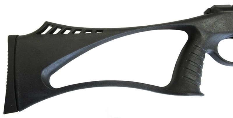 Классическая пружинно-поршневая винтовка до 3 Дж с взведением боевой пружины поворачивающимся в вертикальной плоскости стволом, предназначена для начального обучения стрельбе, а также для развлекательной стрельбы. Пневматическая винтовка оснащена настраиваемым 2х шаговым спусковым механизмом. Ход спускового крючка и усилие спуска имеют заводскую настройку. Ход первого шага может быть настроен с помощью винта спускового механизма. Ложа выполнена из пластика и имеет ортопедический приклад футуристической формы. Пистолетная рукоятка и цевье имеют насечки для более уверенного контроля над винтовкой даже при плохих погодных условиях. Открытые прицельные приспособления с микрометрической регулировкой по горизонтали и вертикали вертикали и светонакопительными элементами, мушка в кожухе. Предусмотрена возможность установки оптического или коллиматорного прицелов с помощью кронштейнов.