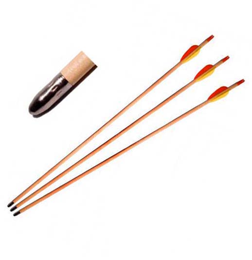 Деревянные стрелы Man Kung MK-W26 станут хорошим выбором для классического лука, мощностью до 30 lbs (13 кг) и отлично подойдут для начинающих лучников. Продукция компании Man Kung обладает приятным соотношением цена/качество. Конструкция стрел MK-W26 обеспечивает хорошее сочетание скорости и мощности стрельбы. Особенности: - Тип наконечника: закругленный - Материал хвостовика: пластик - Материал оперения: пластик Характеристики: