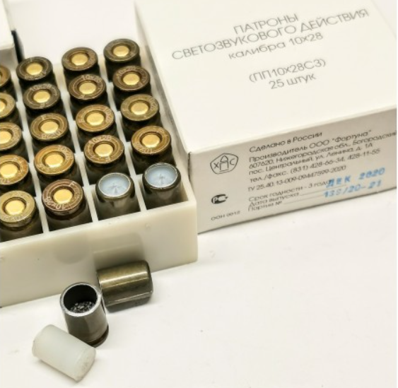 Патрон светозвуковой 10х28 (Фортуна), пачка 25 шт