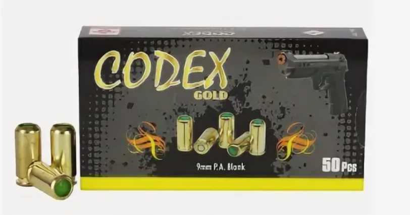Главная → Купить по низкой цене → Охолощенное оружие → Холостые патроны → Патроны холостые CODEX кал. 9PAK 9мм (GOLD), пачка 50 шт