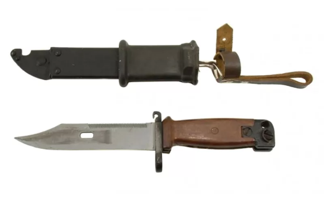 Внимание, это не нож, это макет ножа! Он НЕ ПРЕДНАЗНАЧЕН для перерезания проволоки, открывания консервных банок и тп. ММГ Штык-ножа для Калашникова АК ШНС-001-01 без пропила (для АКМ), коричневая рукоятка, в металлических ножнах с резиновой накладкой По габаритам соответствует боевому аналогу и может быть установлен на макет АК. Деактивация произведена путем отпуска (смягчения) металла лезвия. Изделие стояло на вооружении, имеются следы эксплуатации. Возможно незначительное присутствие следов коррозии. Товар имеет сертификат производителя, подтверждающий, что данный штык-нож является предметом хозяйственно-бытового назначения, и может продаваться и приобретаться без ограничений. Для Екатеринбурга: