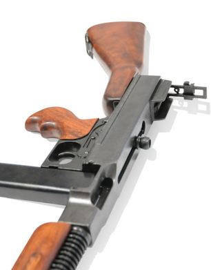 Макет автомата Томпсона M1A1 DE-1093 - копия одного из самых знаменитых пистолетов-пулеметов той эпохи. В отличии от варианта Томпсон М1928, который весьма известен как оружие гангстеров, данный образец имел упрощенную конструкцию в целях экономии средств на массовое производство, и именно с этим пистолетом-пулеметом армия США воевала во Второй мировой войне. Копия получилась достаточно точной, все пропорции и габариты соблюдены, макет Томпсона M1 A1 DE-1093 можно взвести и спустить курок, что добавляет реалистичности. Изготовлен он из металла, ложа деревянная. Купить автомат Томпсона M1A1 DE-1093 в подарок любителю легендарного оружия - значит гарантированно его порадовать. Стоит добавить что макет автомата, как часто называют данную модель, неправильное определение, так как это не автомат, а пистолет-пулемет. Обращаем ваше внимание, что это именно МАКЕТ оружия. Он имеет подвижные части, но НЕ МОЖЕТ СТРЕЛЯТЬ никакими снарядами и патронами. Характеристики: