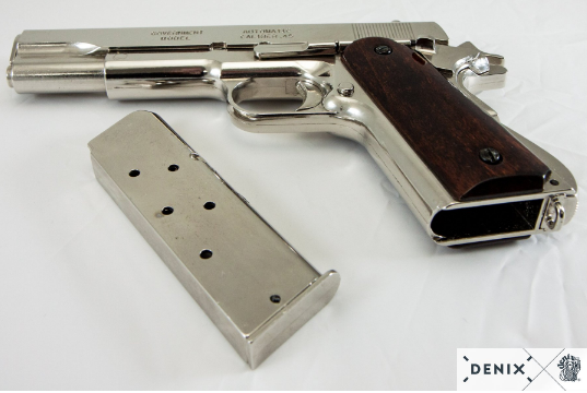 Главная → Купить по низкой цене → Макеты оружия (ММГ) → Макеты Denix (Испания) → Пистолеты → ММГ макет Пистолет Кольт-45 1911 г, DENIX DE-6312, хром, разборный