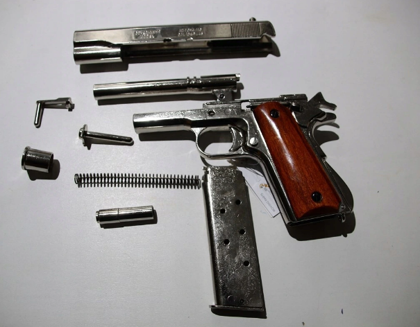 ММГ макет Пистолет Кольт-45 1911 г, DENIX DE-6312, хром, разборный