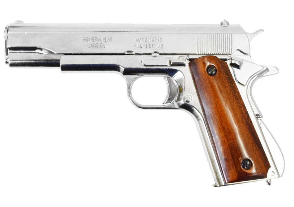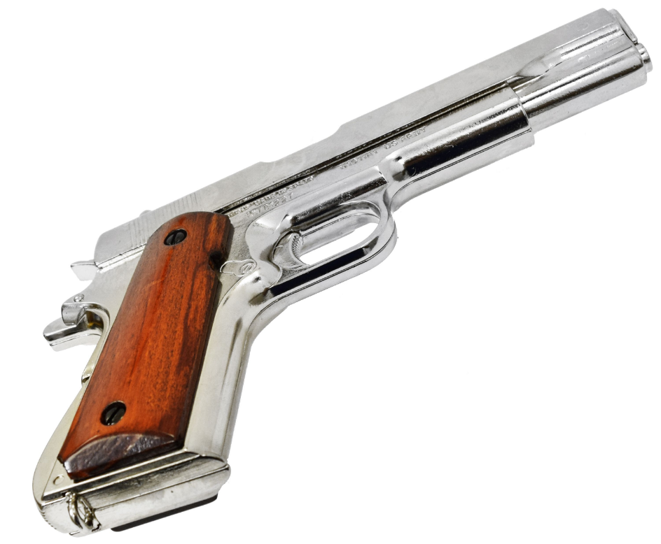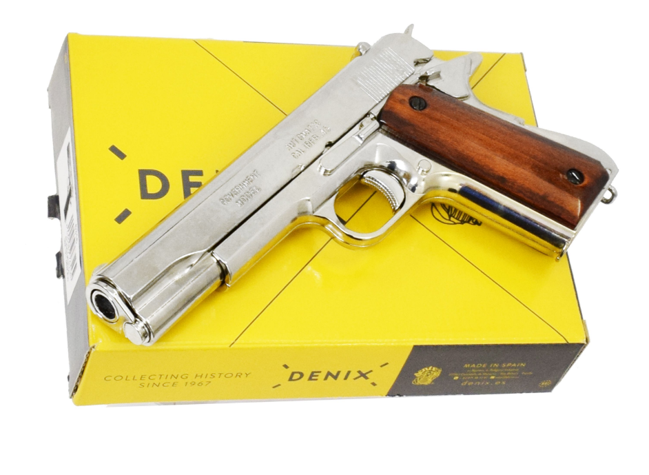 ММГ макет пистолета Colt 1911, .45 калибра, никель + дерев. накладки (США, 1911 г) DENIX DE-6316