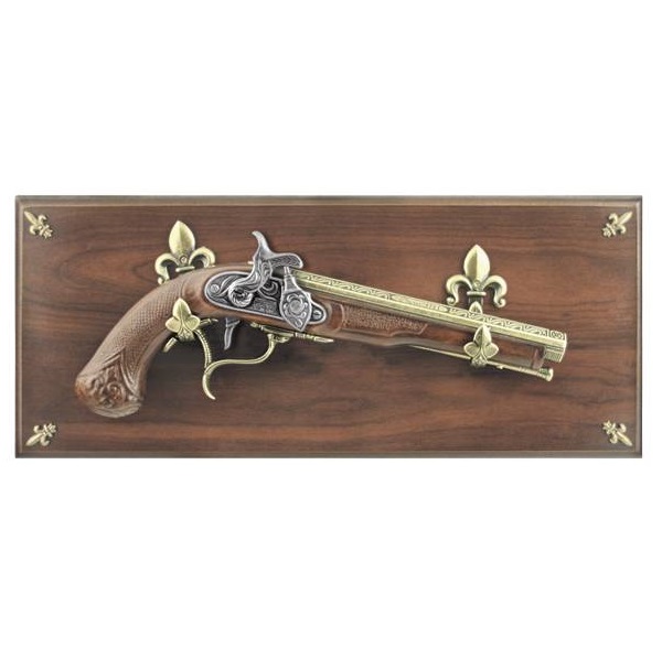 Пистоль является полноразмерной копией (вес, размер) оригинала. Представленная копия, пистоль оружие, изготовлена с подвижным ударно кремнёвым замком. Ствол старинного пистолета выполнен из металла, с колодкой и рукоятью из пластика на панно из дерева (массив). Обращаем ваше внимание, что это именно МАКЕТ оружия. Он имеет подвижные части, но НЕ МОЖЕТ СТРЕЛЯТЬ никакими снарядами и патронами. Характеристики: