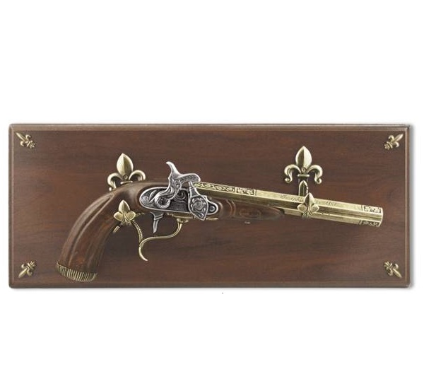 Пистоль является полноразмерной копией (вес, размер) оригинала. Представленная копия, пистоль оружие, изготовлена с подвижным ударно кремнёвым замком. Ствол старинного пистолета выполнен из металла, с колодкой и рукоятью из пластика на панно из дерева (массив). Обращаем ваше внимание, что это именно МАКЕТ оружия. Он имеет подвижные части, но НЕ МОЖЕТ СТРЕЛЯТЬ никакими снарядами и патронами. Характеристики: