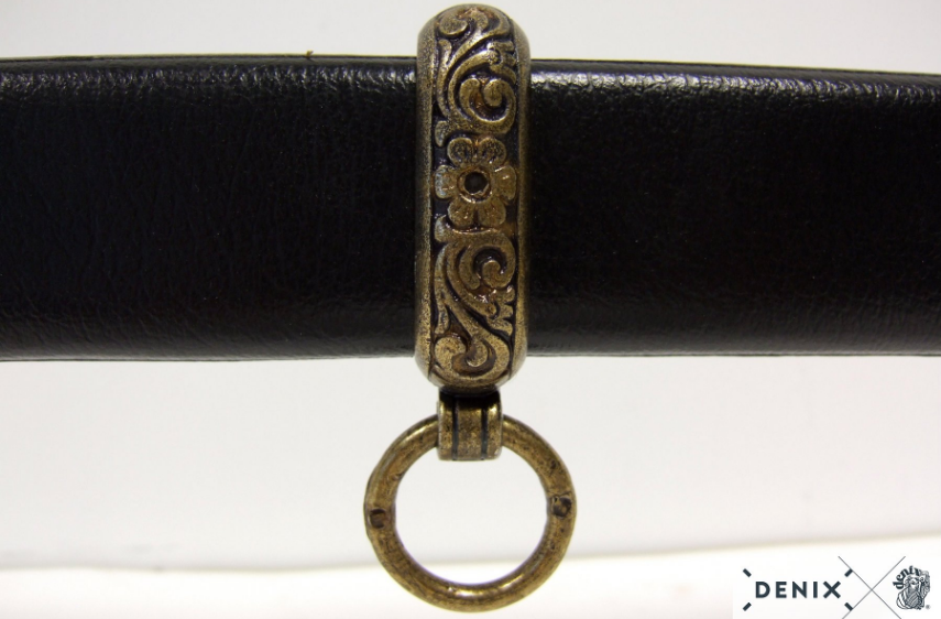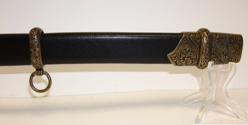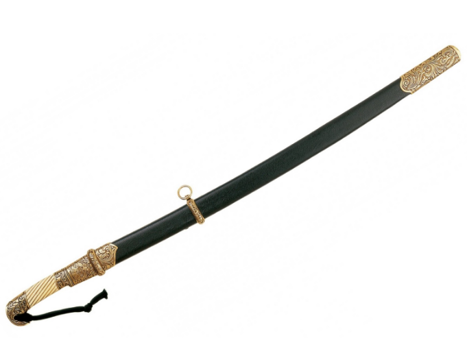 Макет шашки полностью соответствует легендарному оригиналу, и выполнена компанией Denix скрупулезно и качественно. Оружие одноклинковое, к концу клинок немного изогнут, длина 98 см. Вес 1560 гБоевой конец шашки из прочного металлического сплава замак, и имеет два лезвия. Ножны с красивым орнаментом выполнены из кожзаменителя и латуни.