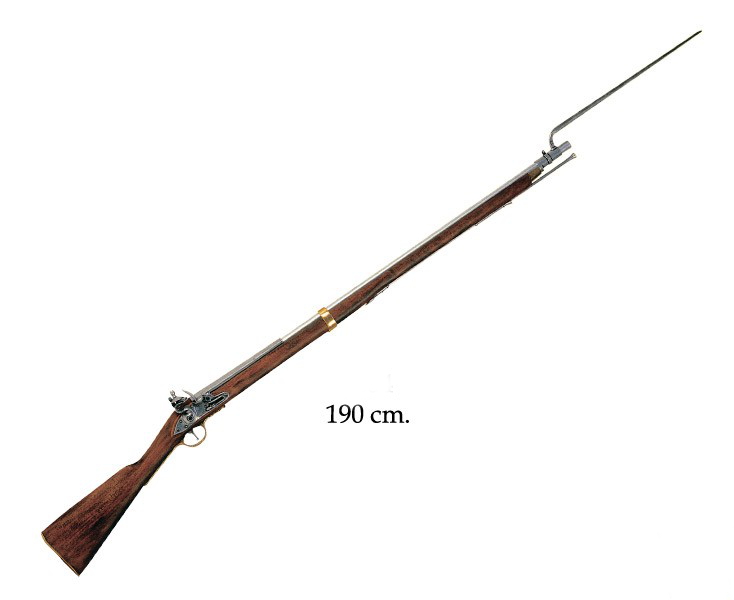 Данное ружье использовалось во времена войн Наполеона 1799-1815 г. Обращаем ваше внимание, что это именно МАКЕТ оружия. Он имеет подвижные части, но НЕ МОЖЕТ СТРЕЛЯТЬ никакими снарядами и патронами. Характеристики: