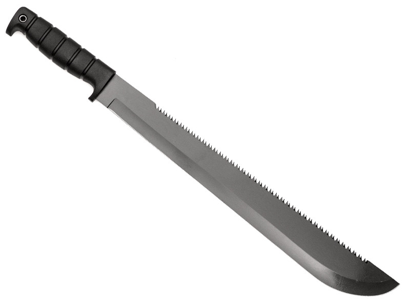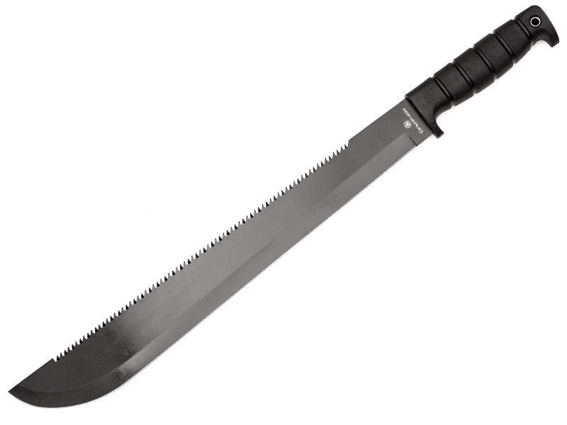 Классический стиль исполнения. Именно такой тип мачете состоял на вооружении армии США с 1943 года. Достаточно длинное, неширокое в обухе лезвие оптимально подходит для рубки тростника или камыша. Рукоять эргономична, удобно лежит в руке.