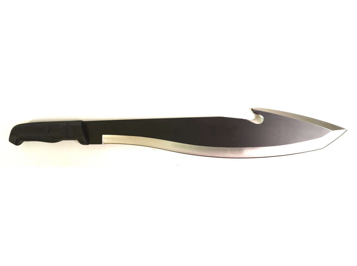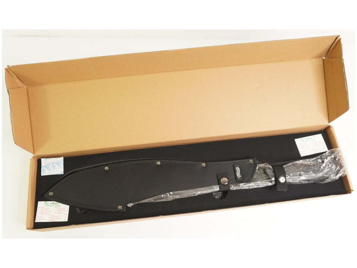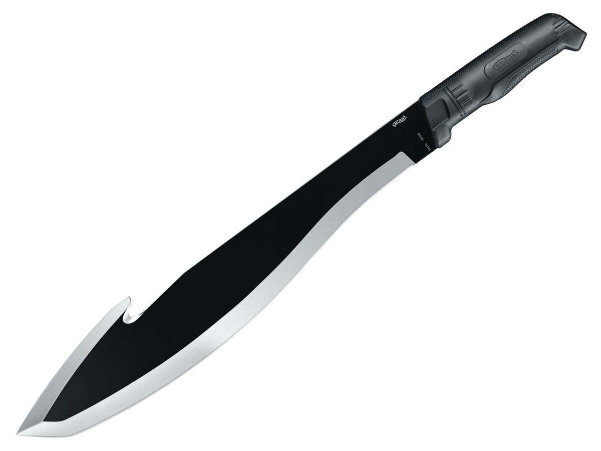 Нож Walther Mach Tac 1 – это практически классика современного мачете. Однако компания-производитель умарекс решила придать модели немного элегантности и выполнила её в темных тонах с функциональной засечкой-крючком на обухе. Общая длина данной модели составляет пятьсот пятьдесят миллиметров. Это средняя длина мачете, которая, считается оптимальной. Таким ножом удобно будет орудовать и в заросшем лесу и в камышах. На ручку приходится ровно одиннадцать сантиметров, а на клинок соответственно сорок четыре. Весит Walther Mach Tac 1 всего-навсего чуть больше семисот пятидесяти граммов, поэтому размахивать им будет не сложно. Есть и более легкие модели мачете, но не все они практичны. Если нож слишком легкий, то человеку нужно прилагать больше усилий, чтобы расчищать себе дорогу в зарослях или, к примеру, рубить деревцо, поэтому он устанет быстрее. Данная модель изготовлена из стали марки 440 stainless steel повышенной прочности и заточена на высокоточном оборудовании, поэтому мачете будет долго оставаться острым. Незаменим Walther Mach Tac 1 будет на даче, да и в целом этот нож является универсальным инструментом.