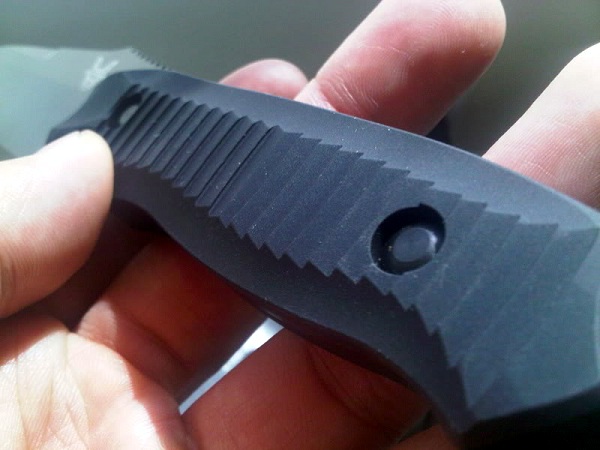 Нож Benchmade Nimravus является одним из самых популярных фиксированных ножей компании Benchmade за последние несколько лет. Такие ножи являются не только непохожими на другие модели, то есть оригинальными, но и прошедшими испытания временем и конкуренцией, а поэтому, как правило, считаются классикой ножевой индустрии. В ножевом сообществе, оценивая новые модели, принято сравнивать их именно с такими ножами, считающимися своего рода эталонными экземплярами. Модель ножа Benchmade Nimravus на протяжении всего периода производства в разные года имел разные изменения. Например, клинок ножа за всё это время был произведён из разных марок стали. На сегодня Benchmade Nimravus 140BK имеет марку стали 154CM. В общем-то, марка стали хорошая, достаточно твёрдая, коррозийноустойчивая и не сложная для правки время от времени. Также сталь неплохо держит заточку, а покрытие клинка BK1, применённое Benchmade, как нельзя лучше и смотрится на клинке, так и великолепно жесткое на износ. Это очень износостойкое, матовое черное покрытие отлично держится на ноже, в отличие от дешевого тефлона, который встречается на многих современных ножах, даже знаменитых марок. Рукоятка Benchmade Nimravus состоит из алюминия, обработанного анодированным черным матовым металлом. Рукоятка удобная ещё и благодаря ребристой поверхности, как принято говорить на западе - эргономичной формы. Следует отметить, что конструкция имеет достаточно глубокую подпальцевую выемку под указательный палец. Нож имеет достаточно небольшие габариты для того, чтобы использовать его на каждый день в качестве EDC, как модно сейчас говорить. С стандартными ножнами нож «дружит» хорошо. Входит уверенно, а изымается легко. Но «сидит» в ножнах не очень плотно, чтобы исключалась вероятность его потерять в случае резких движений на природе. Поэтому нужно или страховать его темляком или постоянно за ним следить, или ещё как-то его дополнительно застраховать от случайного выпадания.
