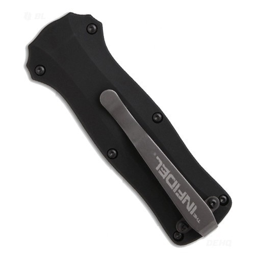 Американская компания Вenchmade уже более 25 лет производит ножи высочайшего качества. Сегодня она может похвастаться лидирующими позициями на рынке ножей, большим штатом сотрудников, использованием инновационных технологий, сотрудничеством с лучшими дизайнерами и огромным количеством поклонников по всему миру. В большом многообразии серий, моделей и модификаций можно выделить ножи, которые безусловно «цепляют» сразу, после того, как взял их в руку, расстаться с ними уже невозможно. Именно к этой категории относится Вenchmade Infidel. Это яркий и запоминающийся технологичный нож, дизайн которого разрабатывал талантливый мастер своего дела – МакГенри (McHenry). Этот дизайнер уже много лет подряд успешно сотрудничает с лучшими производителями ножей во всем мире. Вenchmade 3350 – это автоматический складной нож с фронтальным открытием. Данный тип конструкции предполагает, что лезвие по продольной оси выдвигается из рукояти, а в закрытом положении оно полностью скрывается в рукояти. Это решение позволяет делать для такого типа ножей клинки кинжального типа с полуторной или двухсторонней заточкой. Так, клинок 3350 Мini Іnfidel является обоюдоострым, лезвие напоминает форму копья и имеет соответствующее название «spear-point». Вenchmade Infidel купить стоит также благодаря практически полному отсутствию люфтов, которые характерны для фронтальных ножей. Благодаря самому высокому качеству производства и ювелирной подгонке деталей удалось избежать этого распространенного недостатка. Выполнен Вenchmade 3350 Mini-Infidel из стали D2. Это инструментальная штамповая сталь, которая относится к премиальному сегменту и используется производителями дорогих ножей в США и Японии. Высокоуглеродистая сталь с высоким содержанием хрома обладает отменной износостойкостью и хорошими антикоррозийными свойствами, стойкостью к абразивным воздействиям и компрессионным нагрузкам. Клинок Вenchmade Mini Іnfidel обладает твердостью 60-62HRc, которая считается оптимальной для поддержания отличных режущий свойств. Длина клинка составляет 79 миллиметр, толщина -2,3 миллиметра. Весит нож всего 80 грамм. Рукоять Вenchmade Іnfidel Mini изготовлена из анодированного алюминия 6061 Т-6, для удобства в ношении она снабжена однопозиционной съемной клипсой. Стоит отметить, что этот нож относится к «черной» категории продукции Вenchmade. Это значит, что Вenchmade Іnfidel купить можно как тактический вариант. С какой бы целью вы ни приобрели данный продукт, вы обязательно оцените его по достоинству. Характеристики: Для Екатеринбурга: